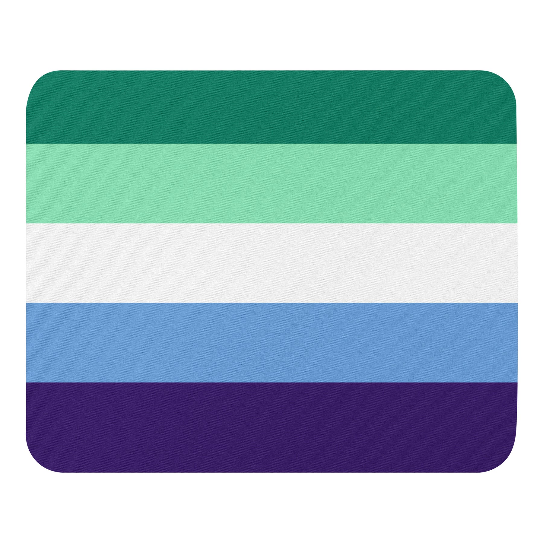 A rectangular mouse pad / mouse mat in the stripes of the Gay Men's Pride Flag